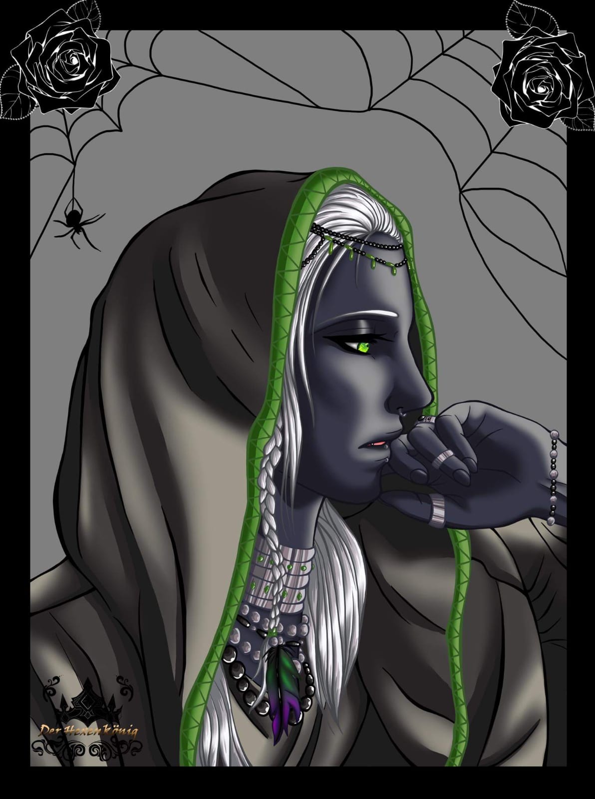 Viel ist nicht bekannt über die sehr junge und stets übellaunige Drow mit den grünen Augen und der innigen Verbindung zu ihrem Schwert, abgesehen von einigen düsteren Gerüchten, die sich manche ihrer Untergebenen hinter vorgehaltener Hand erzählen.
